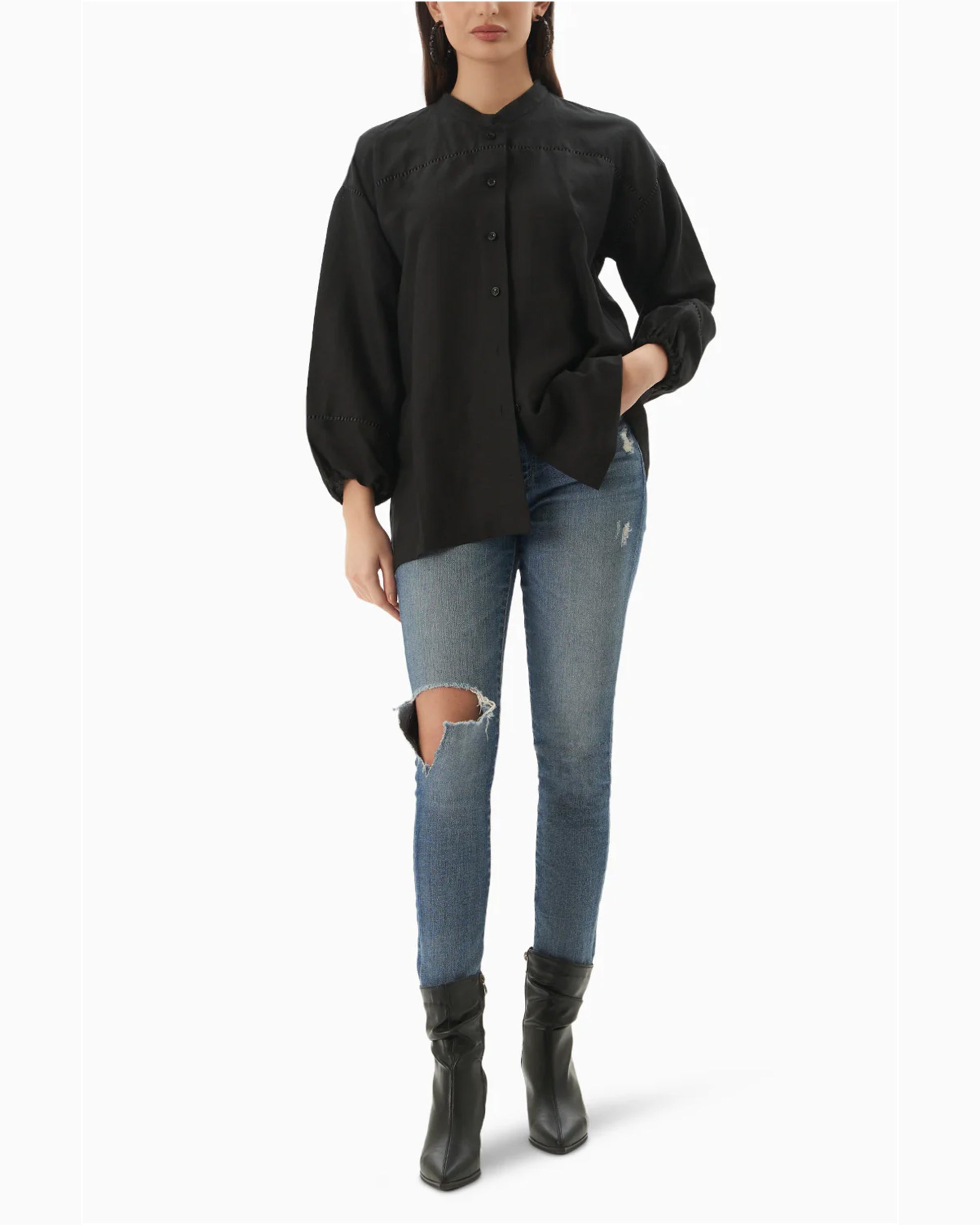 Featuring a cotton linen shirt with lace beading, designed in a flattering straight fit. Crafted from cotton linen, this piece radiates elegance and style.