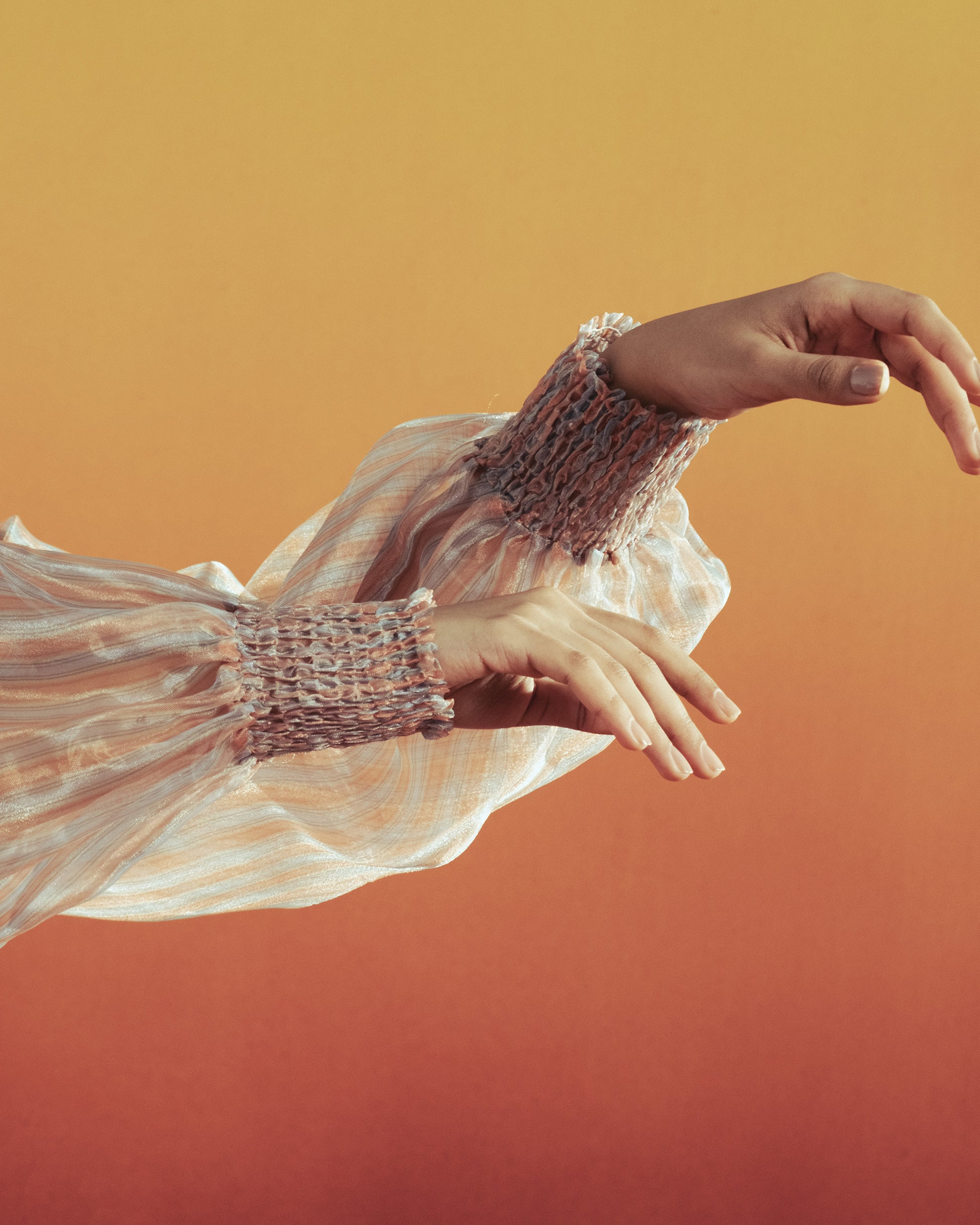 A sheer striped wrap jacket cinched at the waist, layered over delicate lace shorts. Light, playful, and effortlessly chic for warm summer days.
