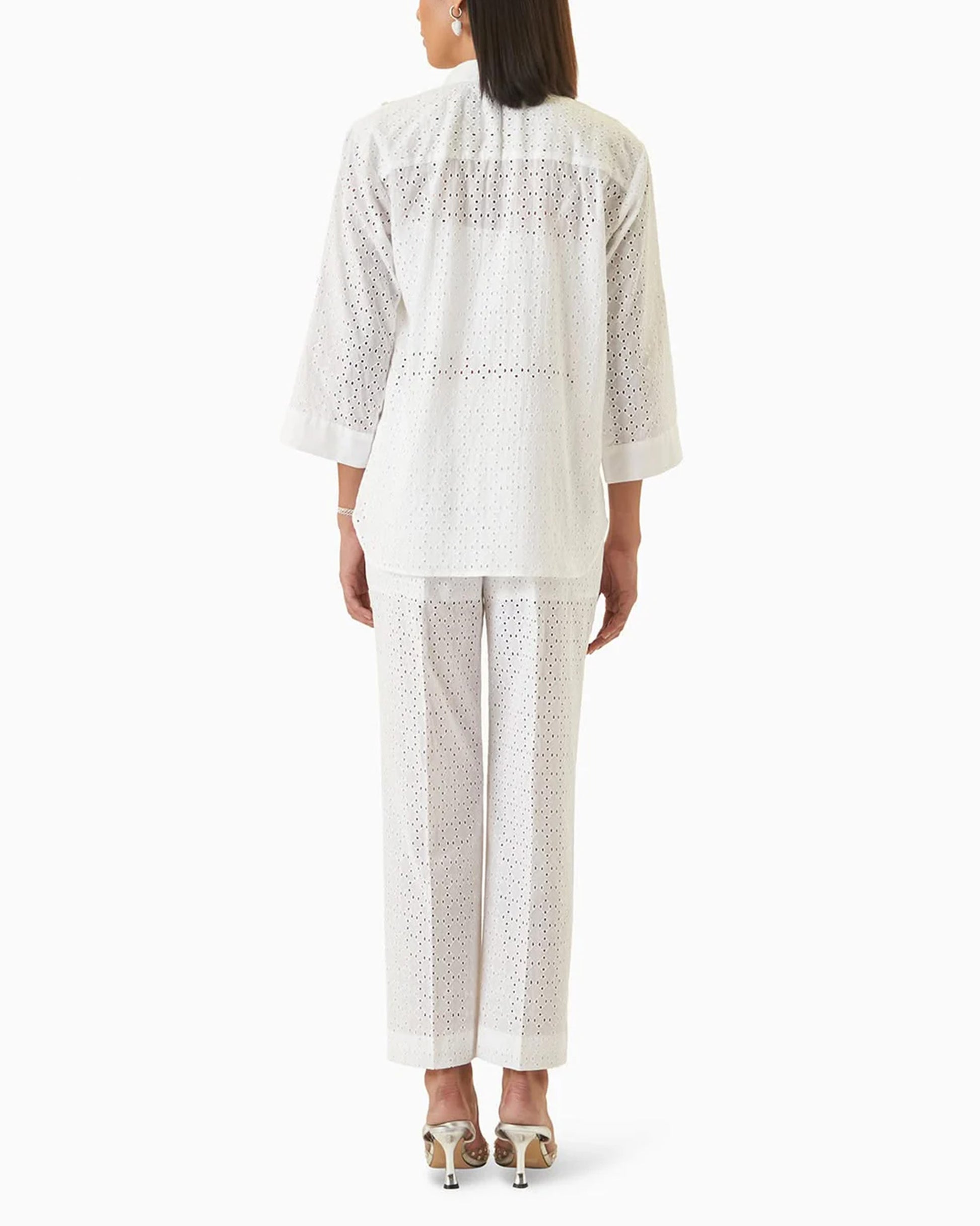 Fabric- Cotton Eyelet Color- White Embroidery- Sequinned Embroidery Fit- Straight Fit Components- 3 Product Code- SVETRISWF254