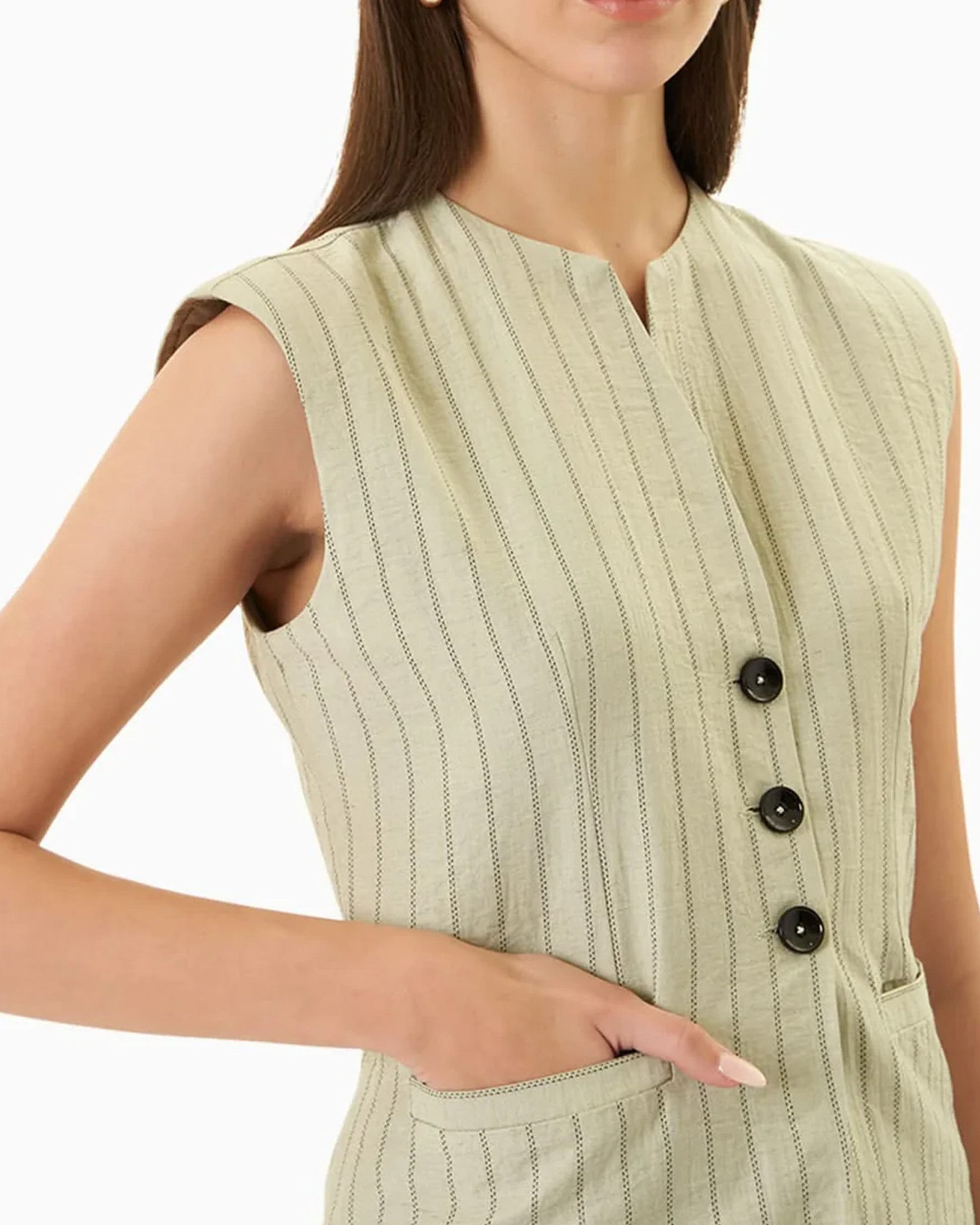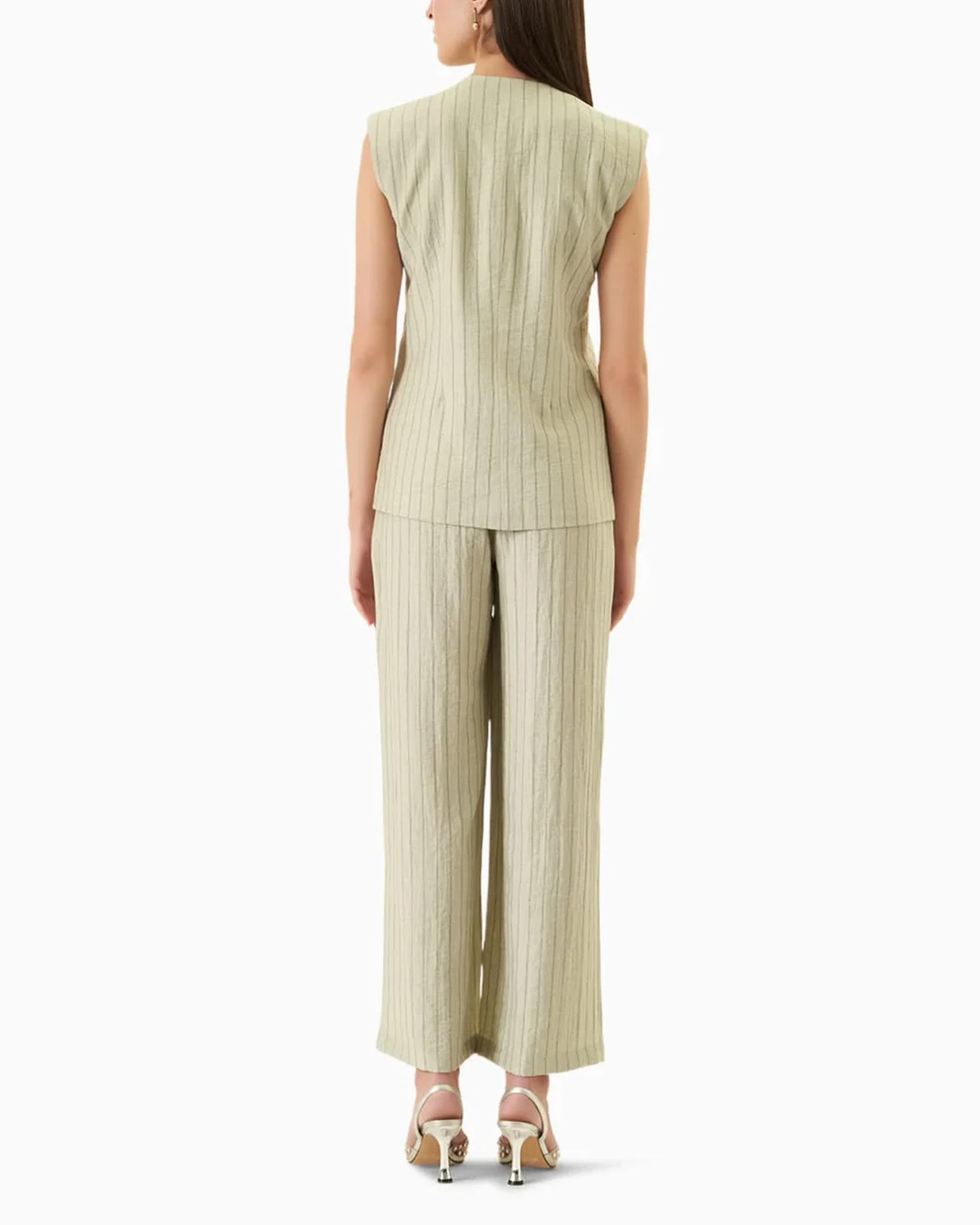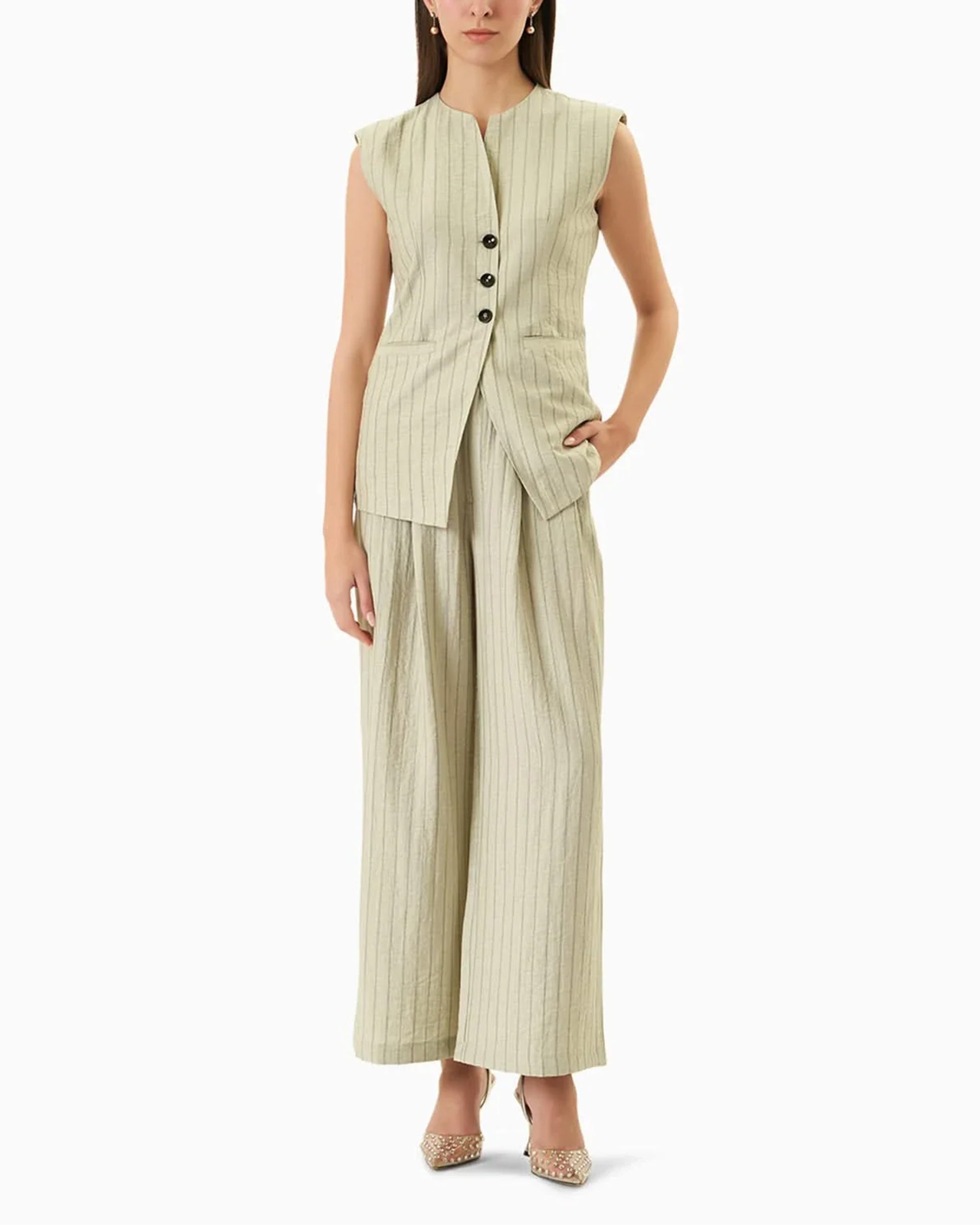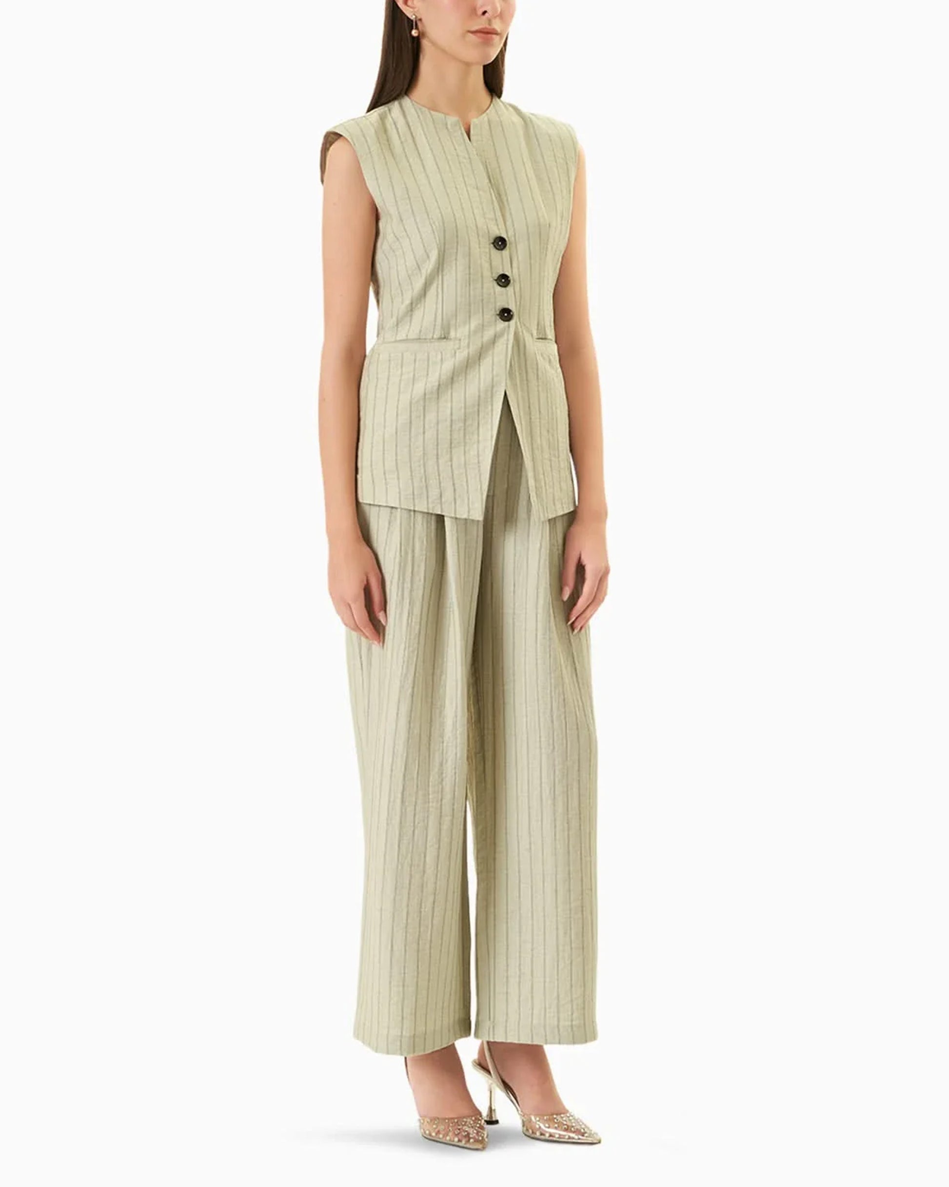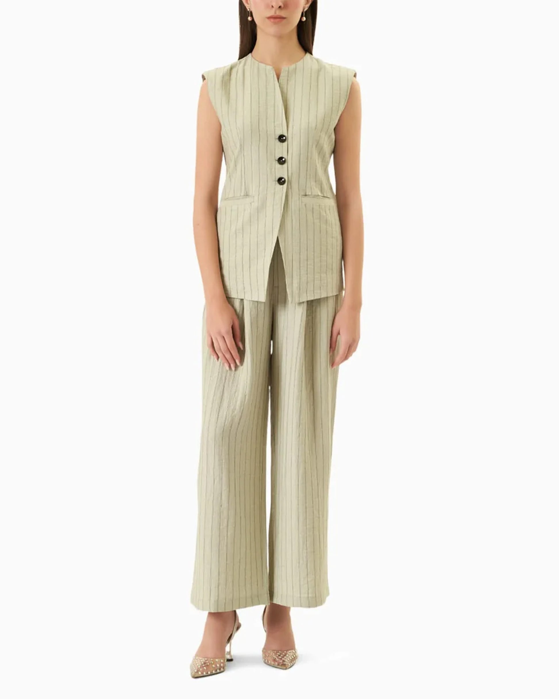 Refined and relaxed, this cotton linen pin-striped coord set offers a chic, breathable style perfect for any occasion