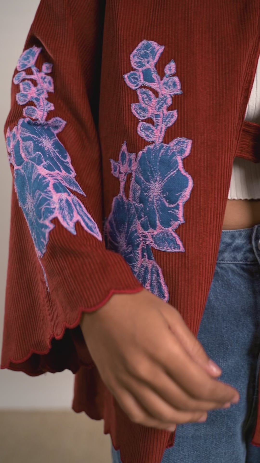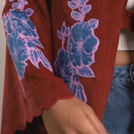Coduroy jacket with denim applique embroidery