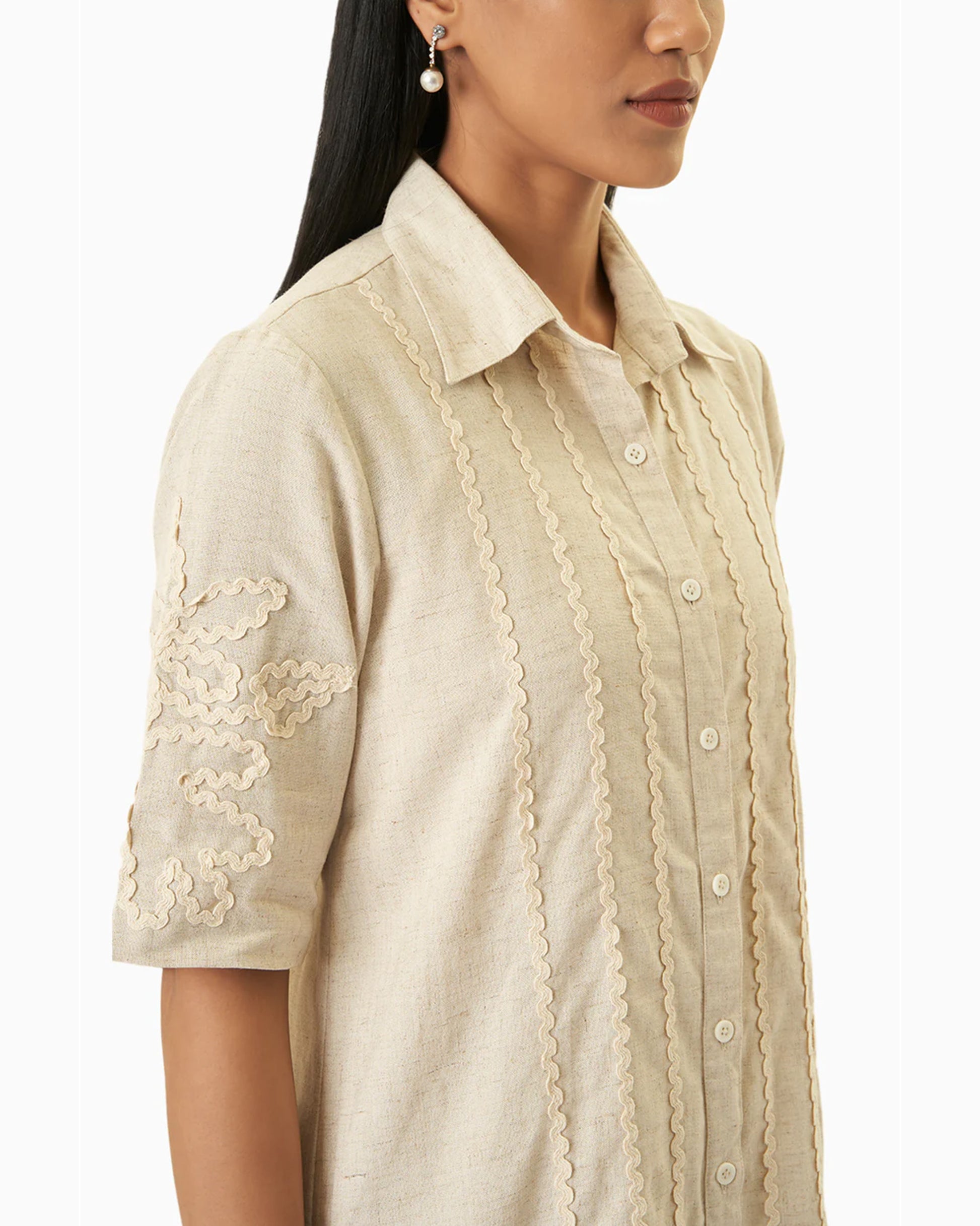 Introducing our exquisite Embroidered Shift Dress, meticulously crafted from cotton linen fabric. With its straight fit design and delicate lace embroidery detailing, this dress exudes timeless elegance and effortless sophistication. Products information Composition- Cotton Linen Colour- Natural Beige Embroidery- Lace Embroidery Fit- Straight Fit Components- 1 Product Code- SVETRISWF24