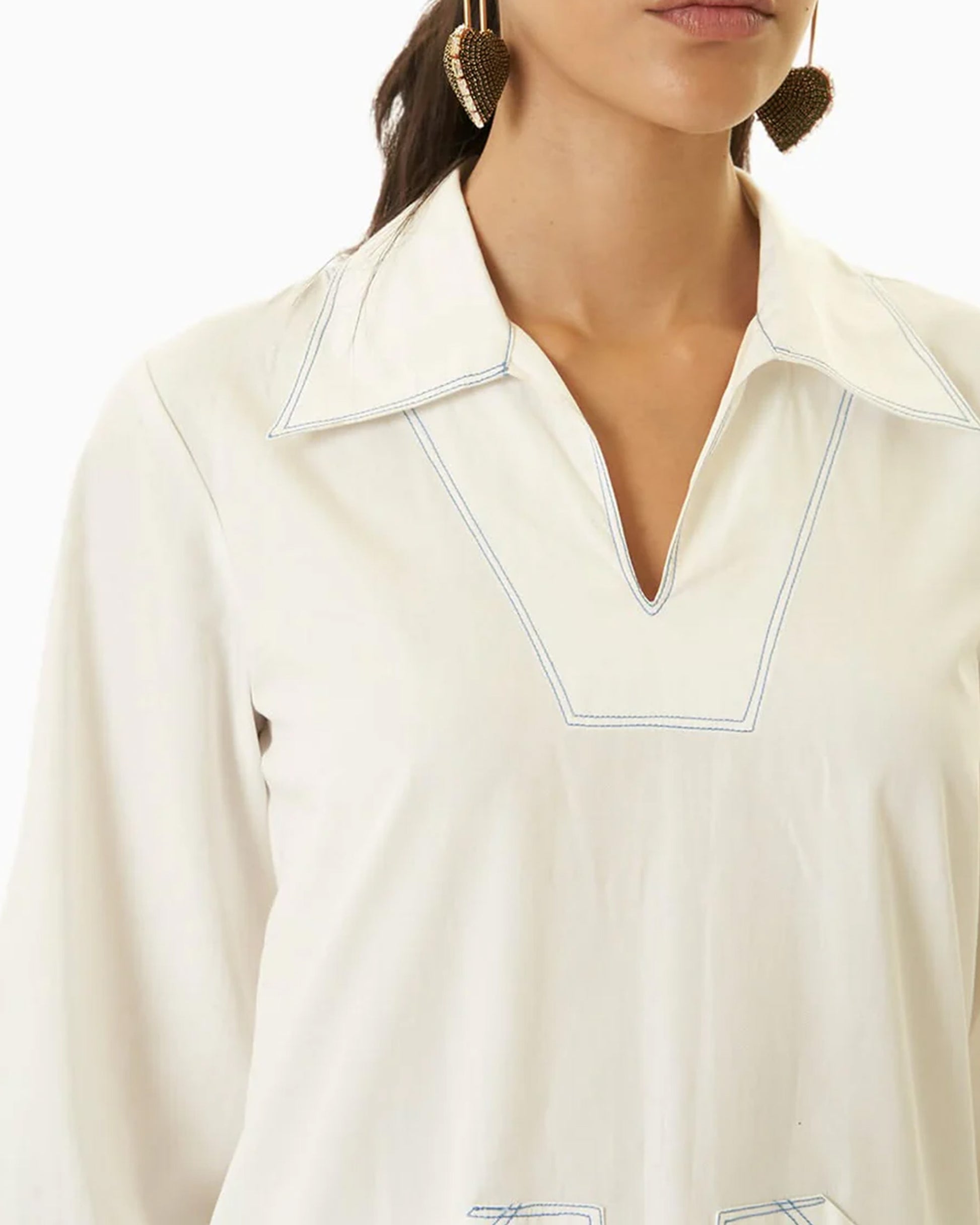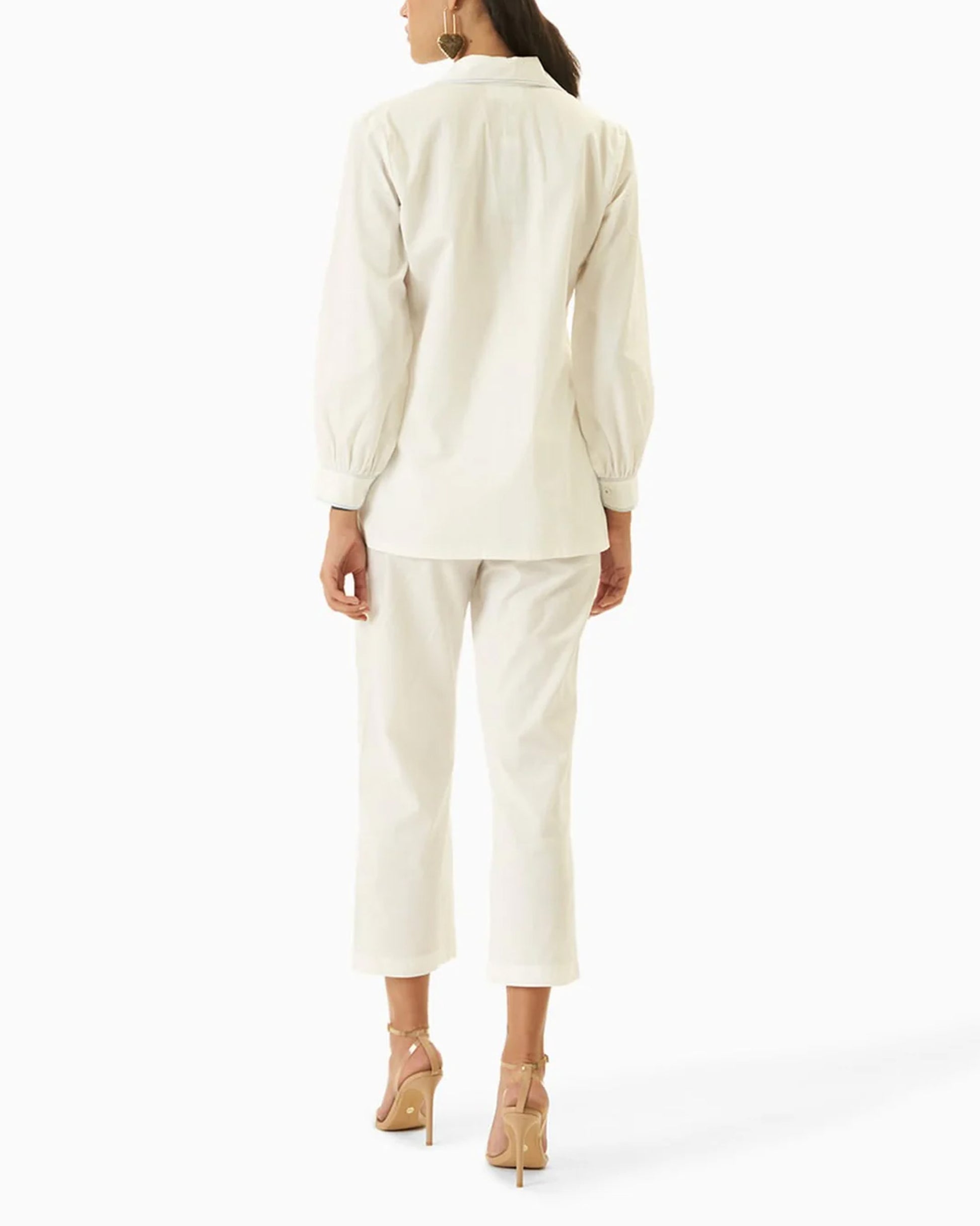 Featuring white bliss cotton co-ord with tagai detailing and pockets with pants
