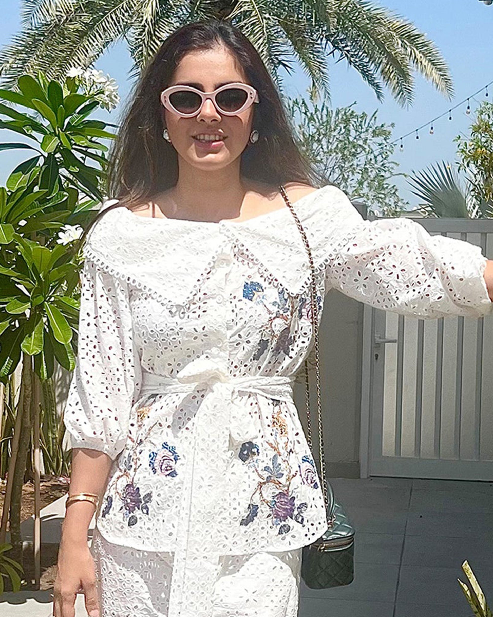 Cotton Eyelet Shirt With Floral Applique